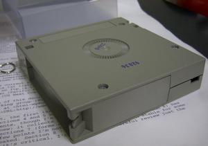 The box on the left cabinet is a 2 GB helical scan 8mm tape drive.
